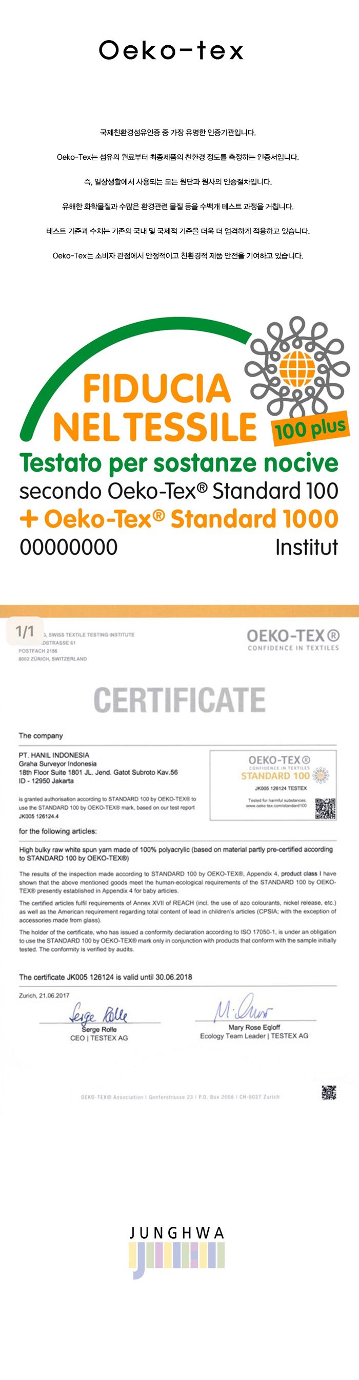 Á¤È½Ç¾÷(ÁÖ)´Â Oeko-tex ÀÎÁõÀ» ÅëÇØ º¸´Ù ½Å·ÚµÇ´Â ǰÁú °³¼±°ú